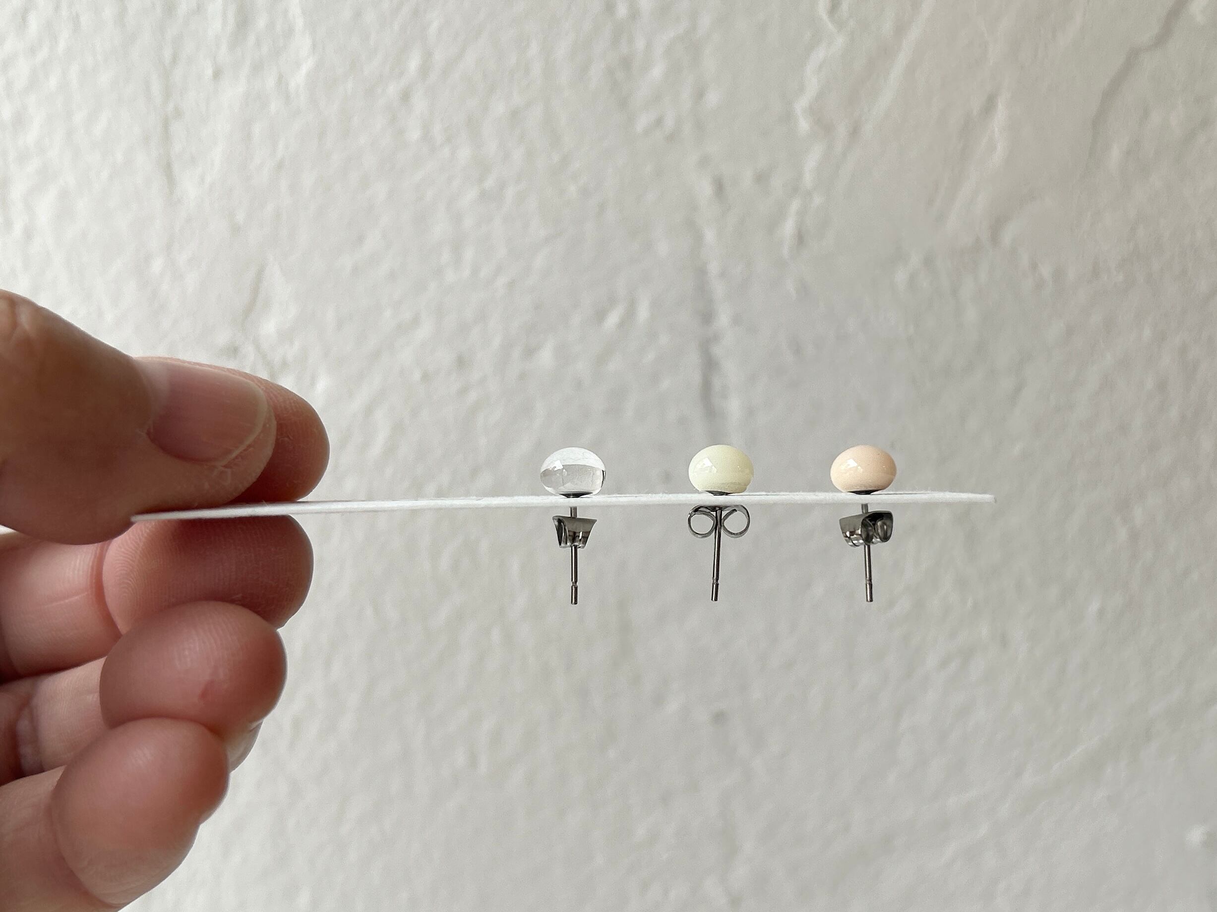板ガラスを切って窯で焼いて作ったガラス粒のピアス。