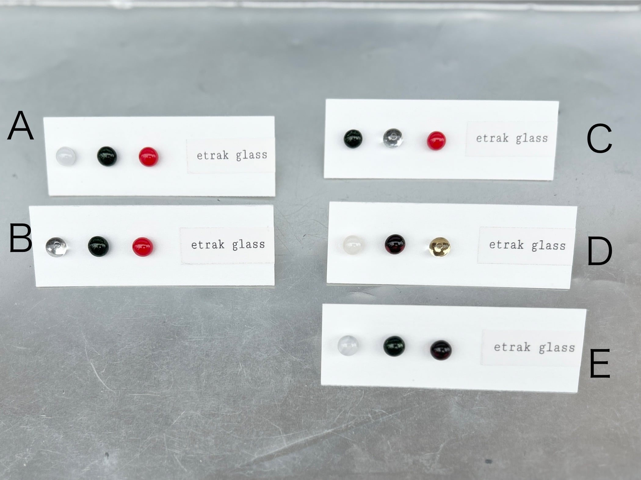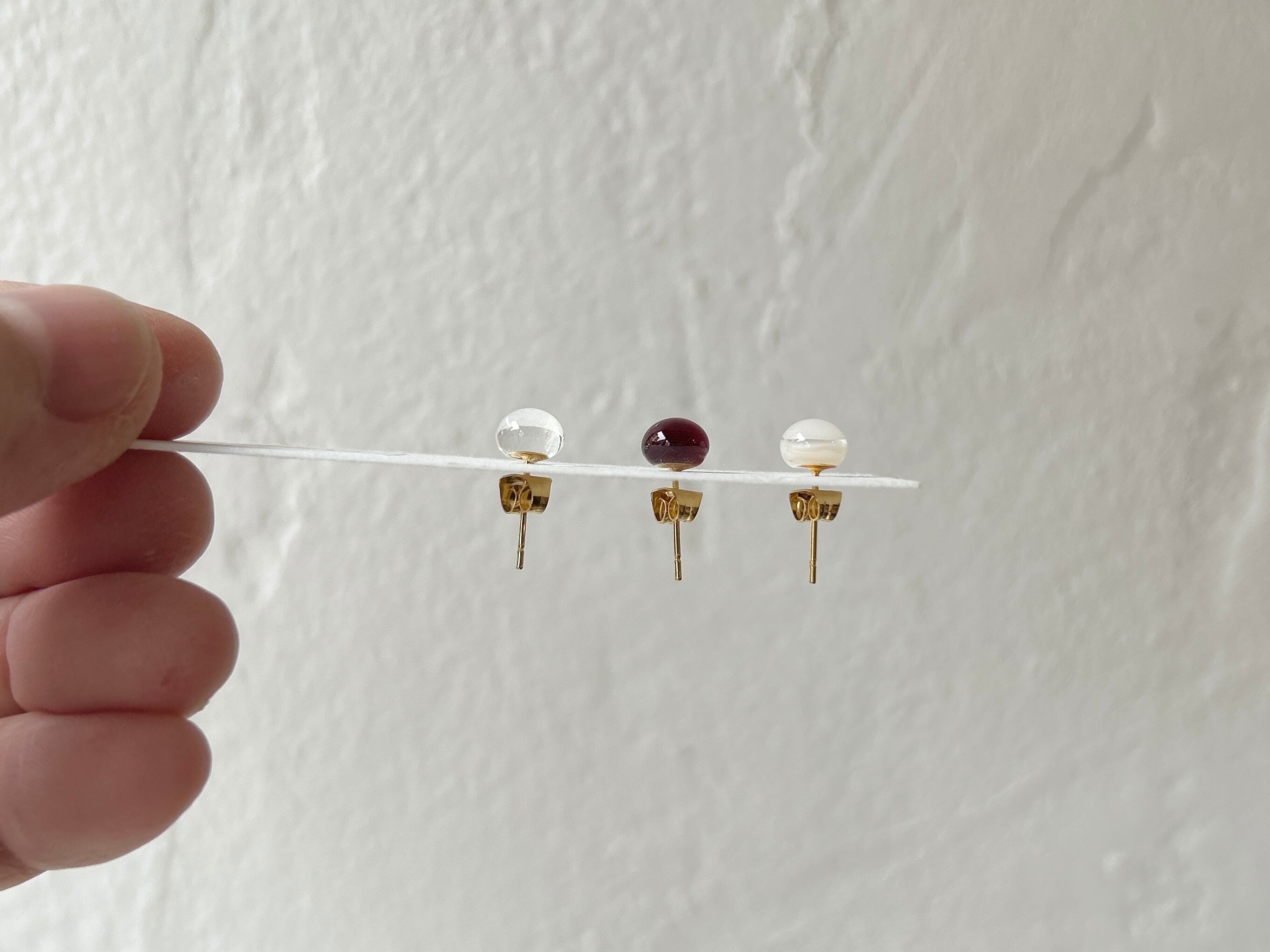 板ガラスを切って窯で焼いて作ったガラス粒のピアス。