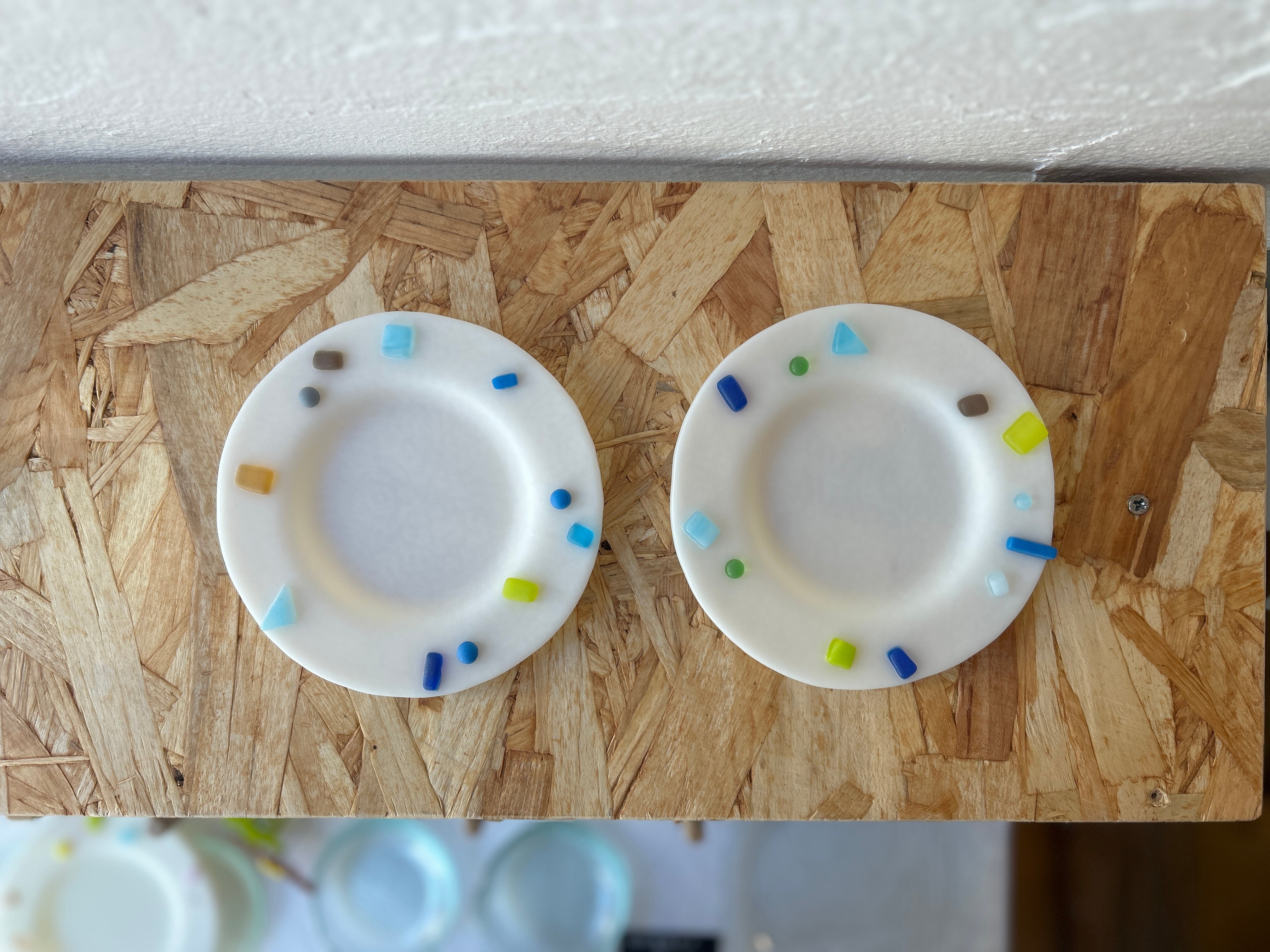 色ガラスのカケラをくっつけたプレート。